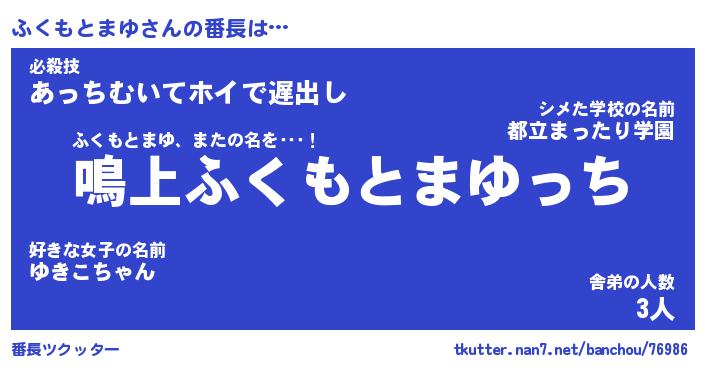 | 肩書あだ名 | 『ふくもとまゆ店長』『ふくもとまゆ班長』 |