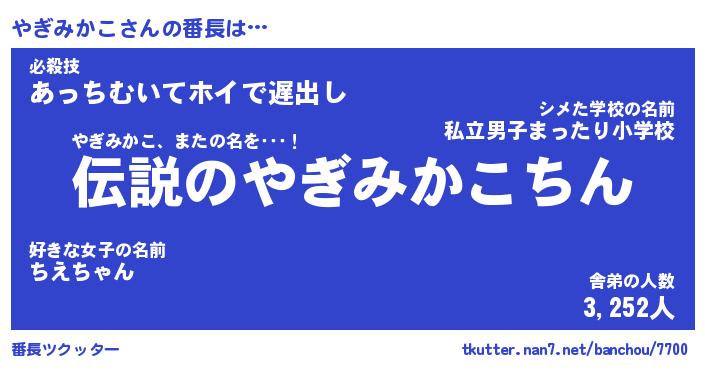 | 2回繰り返すあだ名 | 『やぎやぎ』『ややぎぎ』『ぬぷぬぷ』 |