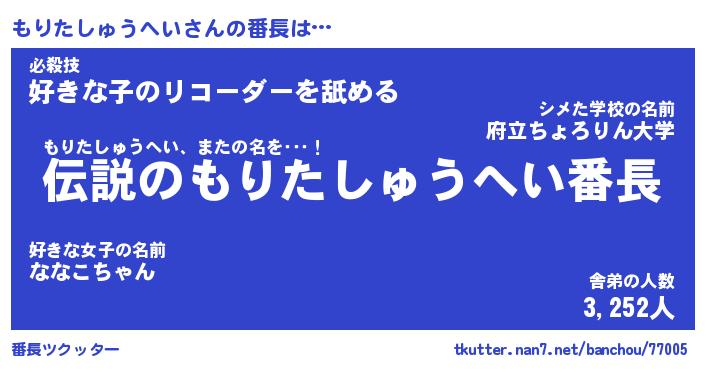 | 肩書あだ名 | 『もりたしゅうへい御曹司』 |