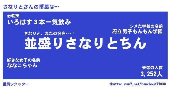 | 意味不明あだ名 | 『ペロリンさなりと』『永久保存さなりと』 |
