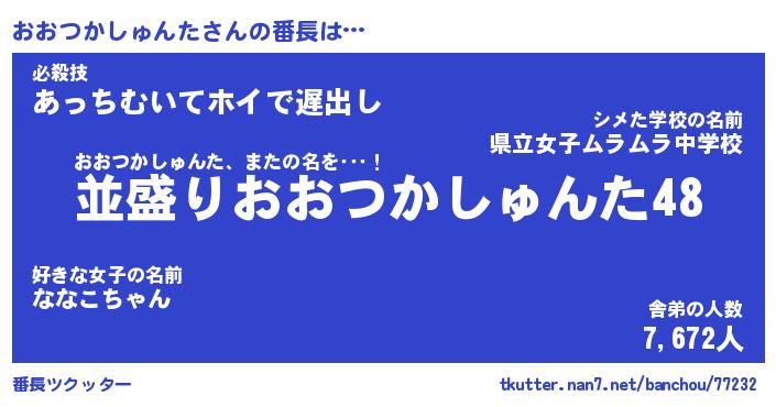 | ヘコむあだ名 | 『おおもー』『つくし』『おおぷりん』 |