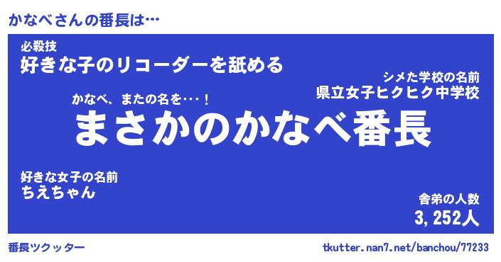 | 意味不明あだ名 | 『ペロリンかなべ』『かなべフォーエバー』 |