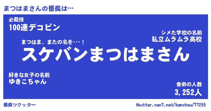 | 2回繰り返すあだ名 | 『まつまつ』『ままつつ』『ぬめぬめ』 |