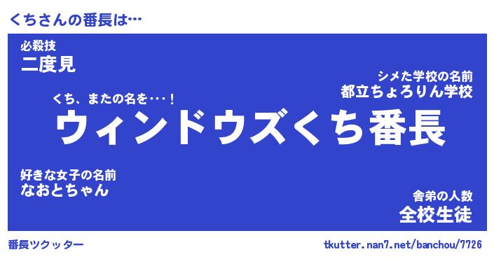 | ヒーロー風カッコイイあだ名 | 『スーパークチ』『ウルトラくちマン』 |