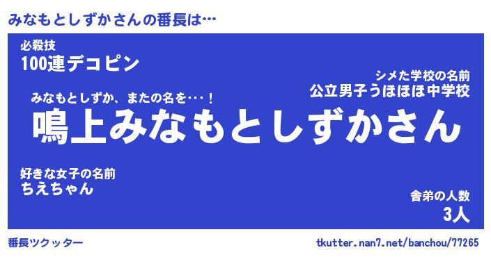 | 2回繰り返すあだ名 | 『みなみな』『みみなな』『おやおや』 |