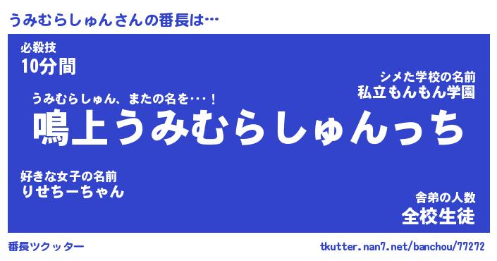 | ヒーロー風カッコイイあだ名 | 『スーパーウミムラシュン』 |