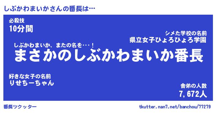 | ファンタジー風あだ名 | 『シブフェル』『ファントムシブス』 |