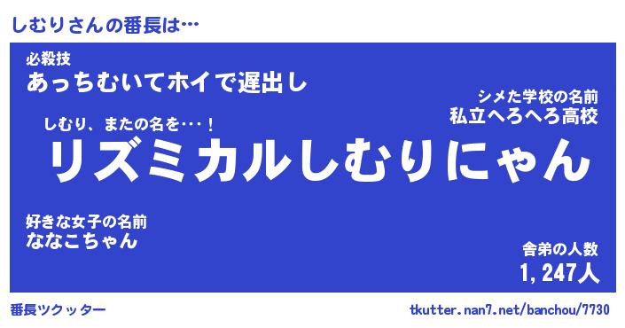 | ヒーロー風カッコイイあだ名 | 『スーパーシムリ』『ウルトラしむりマン』 |