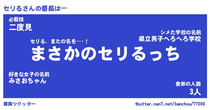 | 2回繰り返すあだ名 | 『セリセリ』『セセリリ』『ぬれぬれ』 |