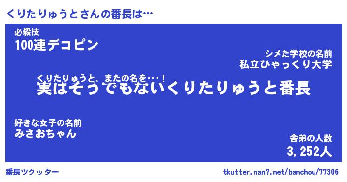 | 意味不明あだ名 | 『ペロリンくりたりゅうと』 |