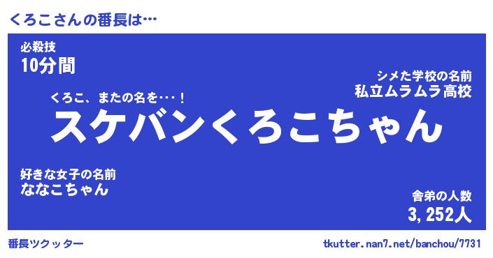 | 意味不明あだ名 | 『ペロリンくろこ』『くろこフォーエバー』 |