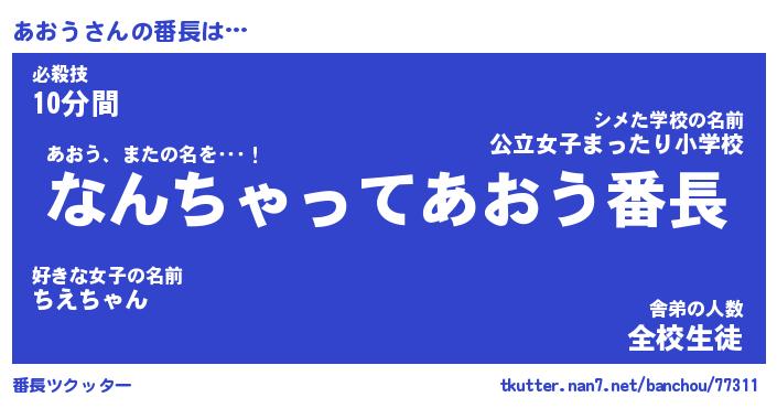 | ヒーロー風カッコイイあだ名 | 『スーパーアオウ』『ウルトラあおうマン』 |