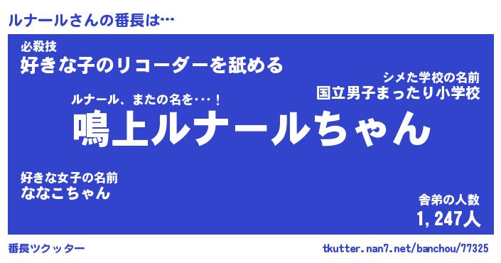 | 意味不明あだ名 | 『ペロリンルナール』『永久保存ルナール』 |