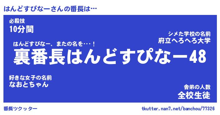 | 肩書あだ名 | 『はんどすぴなー店長』 |