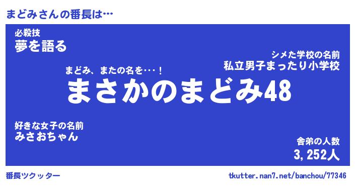 | ヒーロー風カッコイイあだ名 | 『スーパーマドミ』『ウルトラまどみマン』 |