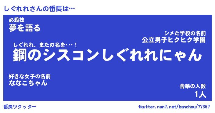 | 肩書あだ名 | 『しぐれれ店長』『しぐれれ大統領』 |