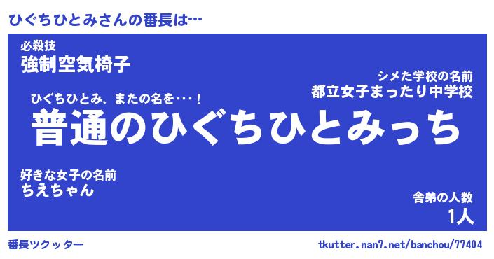 | 伝説のあだ名 | 『不死鳥のスナイパーひぐちひとみ』 |