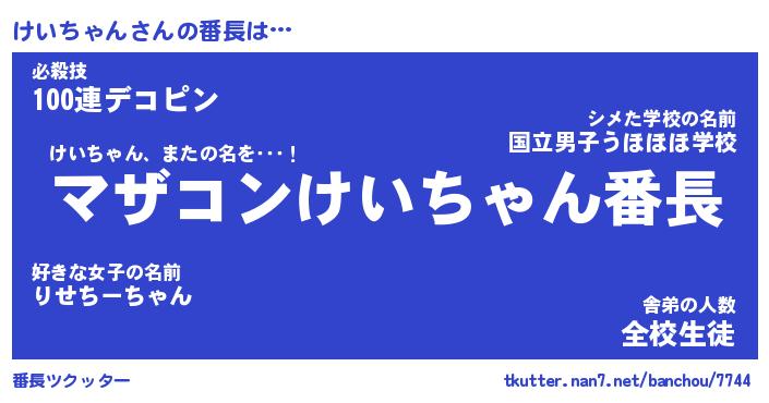 | 伝説のあだ名 | 『封印されしスナイパーけいちゃん』 |