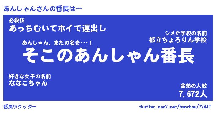 | ポケモン風あだ名 | 『アンチュウ』『アンシダネ』 |