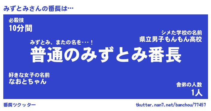| 男性向けラノベタイトル風あだ名 | 『みずとみの憂鬱』 |