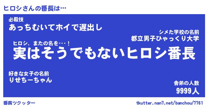 | ヒーロー風カッコイイあだ名 | 『スーパーヒロシ』『ウルトラヒロシマン』 |