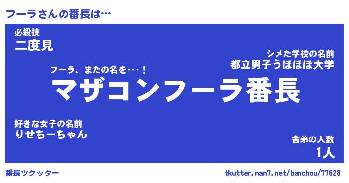 | ポケモン風あだ名 | 『フーチュウ』『フーラダネ』 |