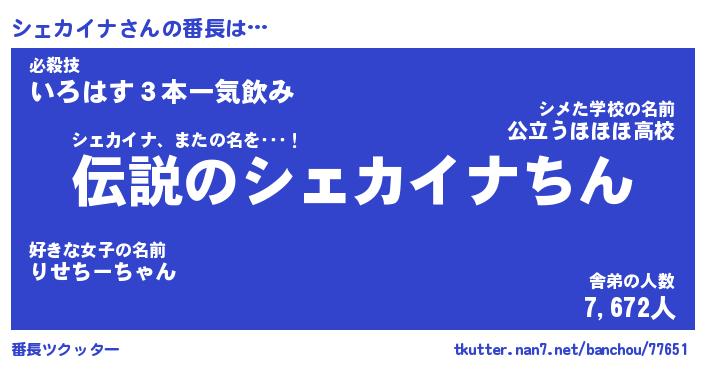 | ヒーロー風カッコイイあだ名 | 『スーパーシェカイナ』『銀牙騎士シェ』 |