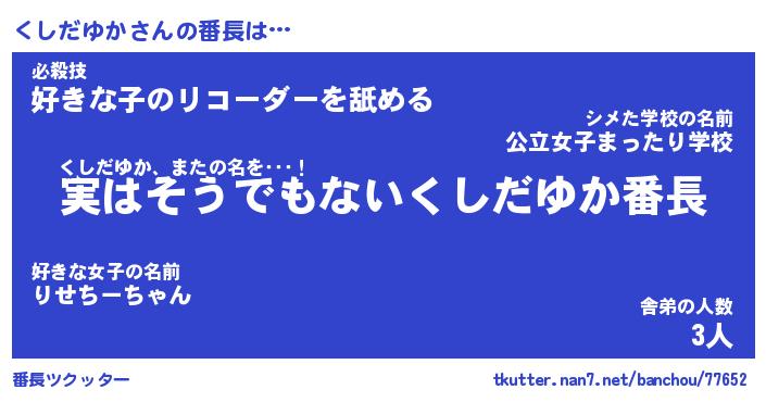 | 恥ずかしいあだ名 | 『プリティーくしだゆか』『くしっちょ』 |