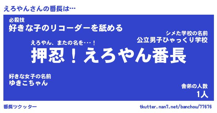 | 意味不明あだ名 | 『ペロリンえろやん』『永久保存えろやん』 |