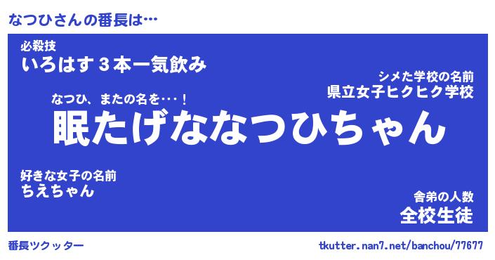 | ヘコむあだ名 | 『なつにゅー』『酢こんぶ』『なつを』 |