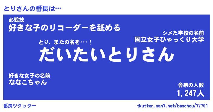| ポケモン風あだ名 | 『トリチュウ』『トリダネ』『ヒトリ』 |