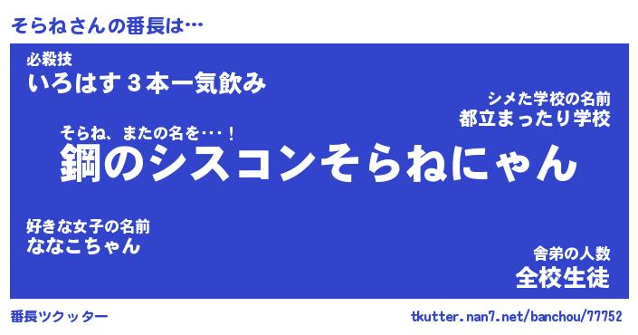 | 肩書あだ名 | 『そらね店長』『そらね大統領』 |