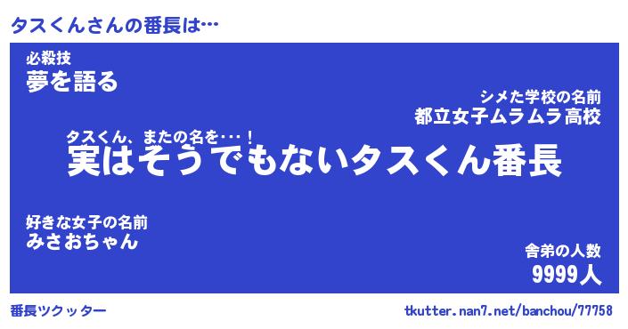 | ヒーロー風カッコイイあだ名 | 『スーパータスクン』『幻影騎士タス』 |
