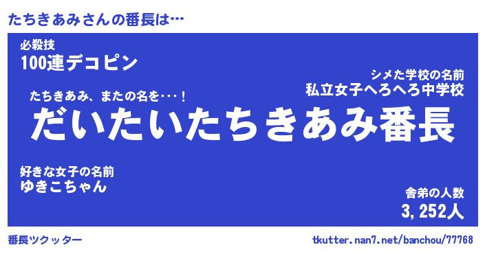 | ファンタジー風あだ名 | 『タチフェル』『エターナルタチキアミー』 |