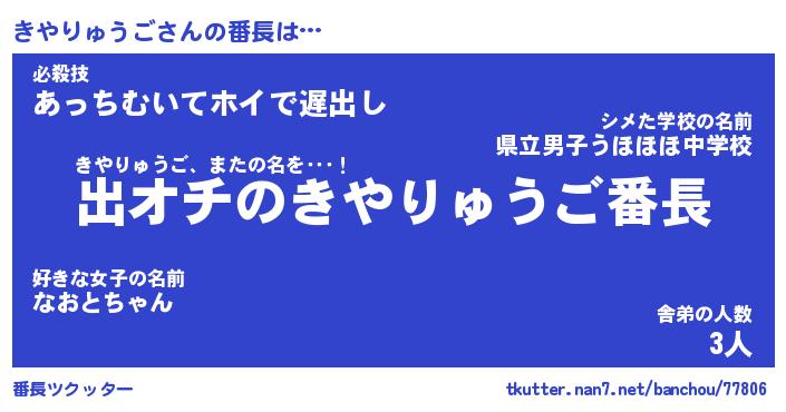| ピコ太郎風あだ名 | 『キコ三郎』『ピキ四郎』『キヤ五郎』 |