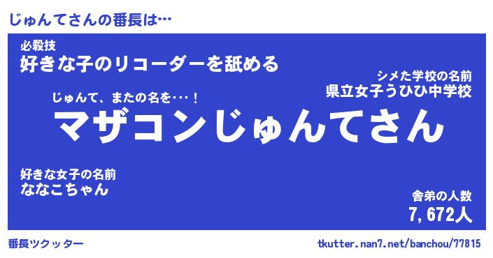 | 意味不明あだ名 | 『ペロリンじゅんて』『永久保存じゅんて』 |