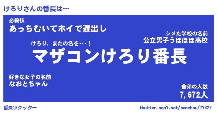 | 意味不明あだ名 | 『ペロリンけろり』『けろりフォーエバー』 |