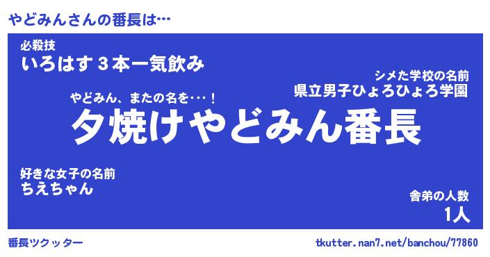 | 肩書あだ名 | 『やどみん店長』『やどみん大統領』 |