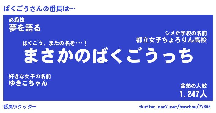 | ファンタジー風あだ名 | 『バクフェル』『エターナルバクゴウー』 |