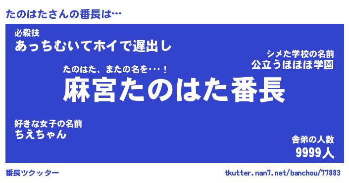| 意味不明あだ名 | 『ペロリンたのはた』『永久保存たのはた』 |