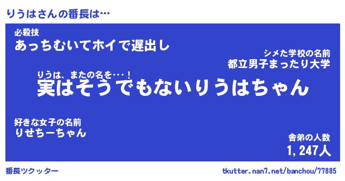 | ヒーロー風カッコイイあだ名 | 『スーパーリウハ』『ウルトラりうはマン』 |