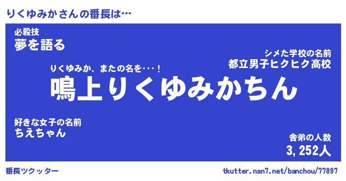 | 伝説のあだ名 | 『封印されしスナイパーりくゆみか』 |