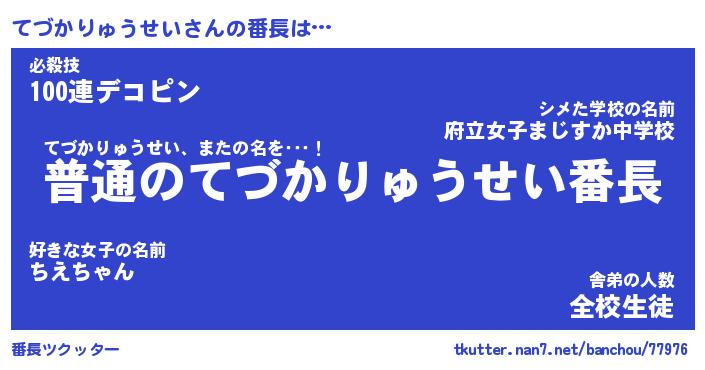 | ポケモン風あだ名 | 『テヅチュウ』『テヅカダネ』 |