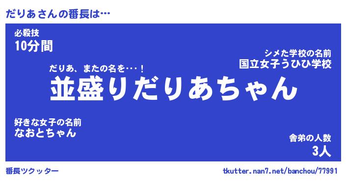 | 2回繰り返すあだ名 | 『だりだり』『だだりり』『おらおら』 |
