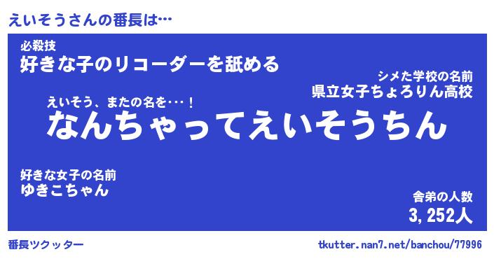 | 伝説のあだ名 | 『伝説のスナイパーえいそう』 |