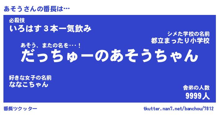 | ヒーロー風カッコイイあだ名 | 『スーパーアソウ』『ウルトラあそうマン』 |