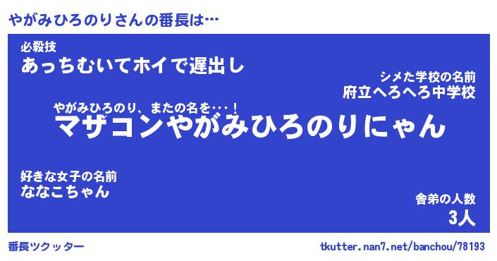 | 意味不明あだ名 | 『ペロリンやがみひろのり』 |