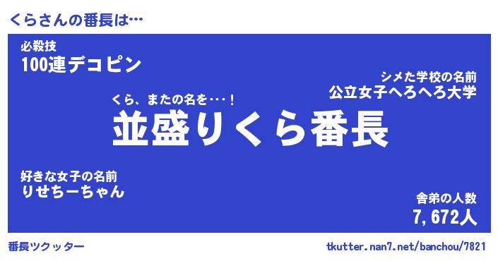 | ヘコむあだ名 | 『くらもー』『つくし』『くらっちょ』 |