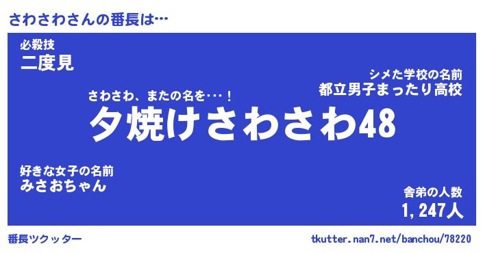 | ヒーロー風カッコイイあだ名 | 『スーパーサワサワ』『炎刃騎士サワ』 |