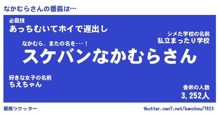 | ヒーロー風カッコイイあだ名 | 『スーパーナカムラ』『幻影騎士ナカ』 |